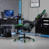 Enhance your setup with our LED Gaming Chair — designed for comfort, style, and immersive gaming sessions. Featuring plush cushioning, sleek PU leather, a reclining seat, 360° swivel, built-in footrest, LED lights, and a strong frame, this chair keeps you relaxed while adding a modern, high-tech look to your space.