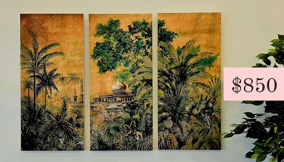 Transform your wall into a captivating focal point with this Golden Oasis 3-Piece Art Set. Featuring lush tropical foliage and intricate architectural detail, this artwork blends elegance with exotic charm—perfect for upscale interiors.