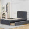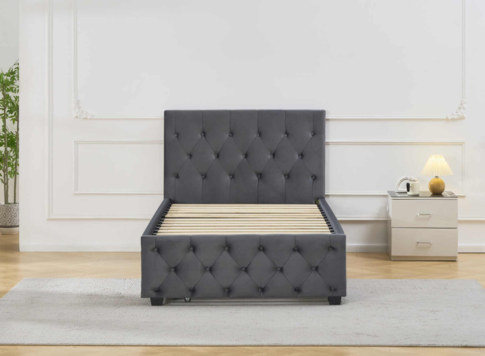 Maximise your space with this stylish and practical Dark Grey Velvet Trundle Bed, the perfect solution for modern living. Ideal for accommodating guests, kids’ rooms, sleepovers, or extra family accommodation, this versatile bed combines comfort, functionality, and elegance in one smart design. The luxurious velvet finish not only adds a sophisticated touch to any room but also provides a soft, inviting surface for a restful night’s sleep.