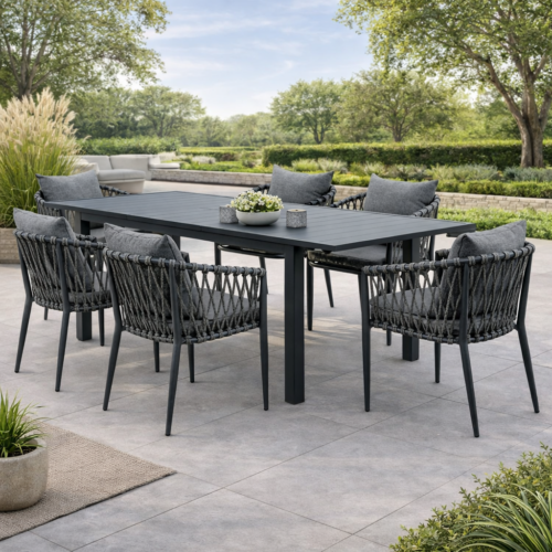 Create the perfect outdoor retreat with our Aluminium Outdoor Modular Lounge Setting, blending modern style and exceptional comfort. Designed with extra-large seats and plush, 12.5 cm thick high-density foam cushions, it’s perfect for relaxing or entertaining in the open air. Featuring a durable powder-coated aluminium frame available in Black or White, it complements any outdoor décor. With customizable pieces and a composite wood tabletop, this setting offers versatility and sophistication. Built for strength and style, it includes a 12-month structural warranty for lasting peace of mind. \ Feature : • Powder-coated aluminium frame for superior strength • 12.5 cm seat and back cushion thickness for all-day comfort. • Cushion Colour: Light Grey with White Outdoor, Dark Grey with Black Outdoor. • Cushion Thickness: 12 cm • Composite wood tabletop • Assembly: Required (Assembly service available for a fee) -