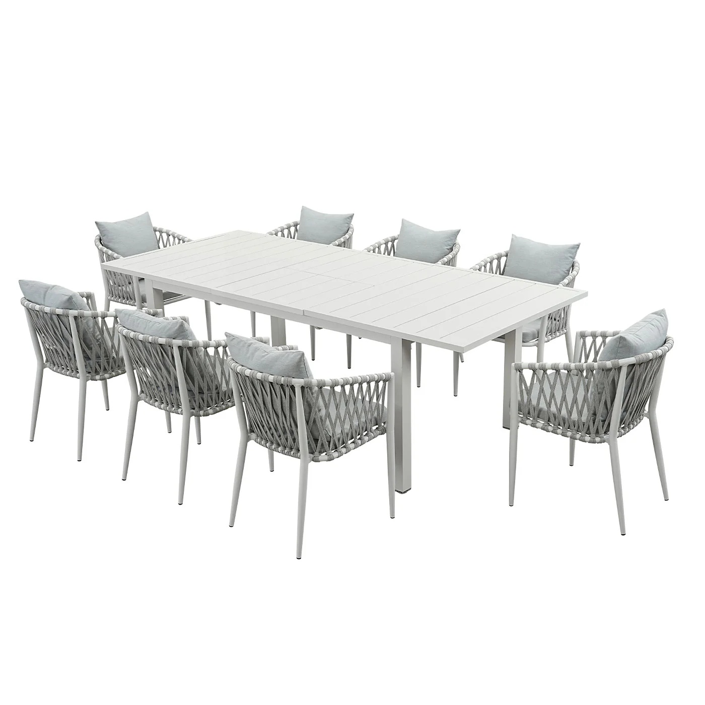 Ella Aluminium Extendable Outdoor Dining Table With 8 Chair – White